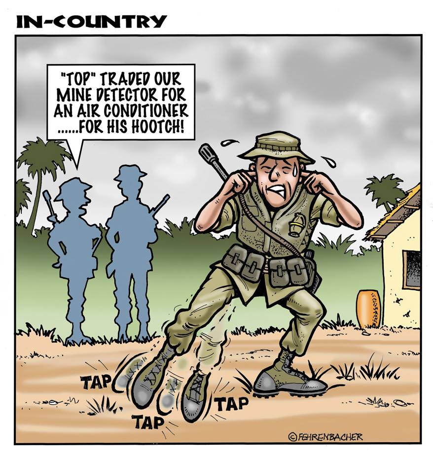 Phil enlisted in the Army in 1965 where you served for years in Vietnam.  He became a graphic designer and has worked for the state of Oregon for 26 years.  He retired in 2003 and started the Cartoon "In-Country".  The cartoons reflect his experiences during his tour of duty in South Vietnam.